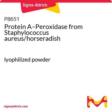 Protein A, extracellular, coupled to Peroxidase, Type VI, by a modification of the procedure of O′Sullivan, M.J., et al., FEBS Lett., 95, 311 (1978), which favors low molecular weight conjugates.