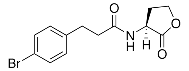 AHL analog is a strong, broad-spectrum inhibitor of numerous LuxR-type receptors (e.g.: LuxR from Vibrio fischeri, LasR from P. aeruginosa, and TraR from Agrobacterium tumefaciens). This compound represents a good choice for initial testing of LuxR-type receptor inhibition.