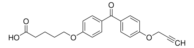 5-(4-(4-(Prop-2-yn-1-yloxy)benzoyl)phenoxy)pentanoic acid is used for chemical probe synthesis, this trifunctional building block contains a light-activated benzophenone, alkyne tag, and carboxylic acid synthetic handle. When appended to a ligand or pharmacophore through its acid linker, this building block allows for UV light-induced covalent modification of a biological target with potential for downstream applications via the alkyne tag. Use alone or in parallel with other multi-functional building blocks to discover the optimal probe for your chemical biology experiments.