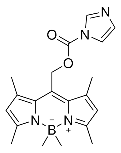 Photoremovable protecting groups derived from meso-substituted BODIPY dyes release acetic acid with green wavelengths >500 nm. Photorelease is demonstrated in cultured S2 cells. The photocaging structures were identified by our previously proposed strategy of computationally searching for carbocations with low-energy