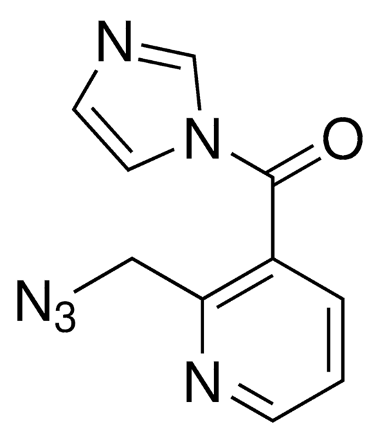 2-(Azidomethyl)nicotinic acid imidazolide (NAI-N3) is an RNA icSHAPE probe for live-cell RNA structure profiling across the genome. icSHAPE -- or in vivo click selective 2′-hydroxyl acylation and profiling experiment -- uses NAI-N3 in a chemoaffinity method to probe RNA structure. NAI-N3 is an azido version of the cell-permeable SHAPE reagent 2-methylnicotinic acid imidazolide (NAI) that permits the tagging of NAI-N3-modified RNA with a biotin moiety for subsequent capture via streptavidin. Not only do such strategies further the understanding of RNA structure in living cells but also provide a tool for identifying regions that may be susceptible to therapeutic targeting. Recently, the azidomethylnicotinyl (AMN) group of NAI-N3 was demonstrated to block the function of gRNA and CRISPR systems, which could be reactivated by removing the AMN groups with Staudinger reduction (DPBM phosphine), overall providing a means to control nucleic acid cleavage and gene editing in live cells.