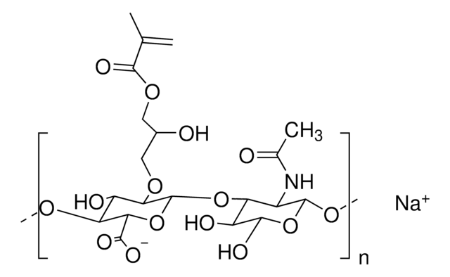 Hyaluronic acid (HA) is a linear polysaccharide of alternating D-glucuronic acid and N-acetyl-D-glucosamine found primarily in connective tissues. HA based hydrogels are widely used in tissue engineering, 3D bioprinting, and drug deliery applications. The methacrylate functionalized hyaluronic acid is photo-crosslinkable, and can be used to generate crosslinked hydrogels.