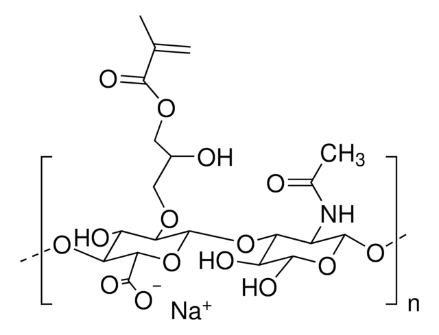 Hyaluronic acid (HA) is a linear polysaccharide of alternating D-glucuronic acid and N-acetyl-D-glucosamine found primarily in connective tissues. HA based hydrogels are widely used in tissue engineering, 3D bioprinting, and drug deliery applications. The methacrylate functionalized hyaluronic acid is photo-crosslinkable, and can be used to generate crosslinked hydrogels.