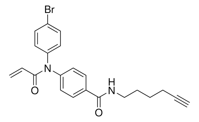 Related useful products may include: Cysteine-reactive fragments: KB02 (912131), KB03 (912654), KB05 (911798), sulfoxide (925136), CoLDR probe (923818) Functionalized scout fragments: KB02-COOH (925047), KB02yne (925225) Electrophilic degraders featuring scout fragments: KB02-SLF (914738), KB03-SLF (914975), KB05-SLF (913715), Biotin-SLF (914223) Cysteine-reactive probes for chemoproteomics: IA alkyne (924237), IA 5-TAMRA (925020), desthiobiotin iodoacetamide (923826), or biotin iodoacetamide (B2059)Related useful products may include: Cysteine-reactive fragments: KB02 (912131), KB03 (912654), KB05 (911798), sulfoxide (925136), CoLDR probe (923818) Functionalized scout fragments: KB02-COOH (925047), KB02yne (925225) Electrophilic degraders featuring scout fragments: KB02-SLF (914738), KB03-SLF (914975), KB05-SLF (913715), Biotin-SLF (914223) Cysteine-reactive probes for chemoproteomics: IA alkyne (924237), IA 5-TAMRA (925020), desthiobiotin iodoacetamide (923826), or biotin iodoacetamide (B2059)