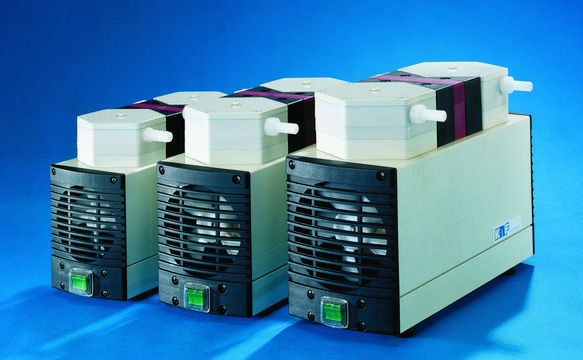 Quiet, high performance diaphragm vacuum pumps can be used alone or as the center of a modular laboratory vacuum system. Replaces noisy rotary-vane pumps for vacuum distillation, drying, filtration, rotary evaporation, degassing of liquids, and applications where water aspirators are used.