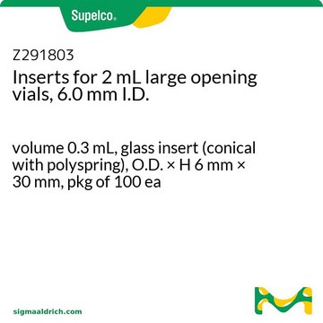 volume 0.3 mL, glass insert (conical with polyspring), O.D. × H 6 mm × 30 mm, pkg of 100 ea