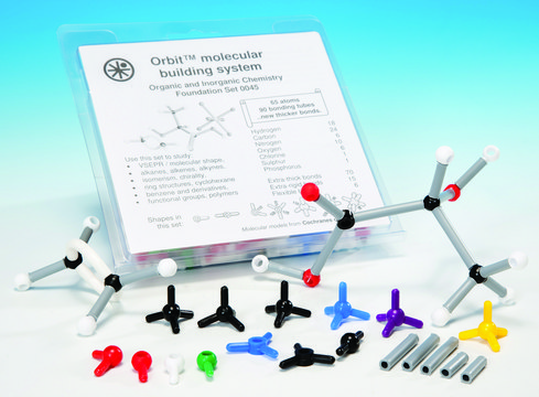A basic set in the Orbit molecular building system without workbook for self-directed work. Contains sufficient atoms and bonds to make simple models to understand chemical structures including: hydrocarbons, ring structures, alcohols and esters, simple inorganic molecules and the basic molecules of life - sugars, amino acids, glycerol and fatty acids.