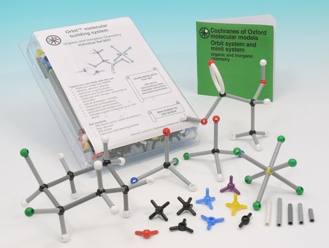 Learn about molecular shape, stereochemistry, isomerism and bonding in organic and inorganic molecules and complex ions. This Orbit set is suitable for students, teachers and researchers doing chemistry at advanced school level, college or university. The contents enable the construction of many different molecules and allow comparison of different structures including saturated hydrocarbons, unsaturated hydrocarbons, cyclic hydrocarbons, functinal groups in organic chmeistry, benzene, polymerization, optical isomerism, simple inorganic milecules and complex ions. Includes instruction/activity booklet, Z129070.