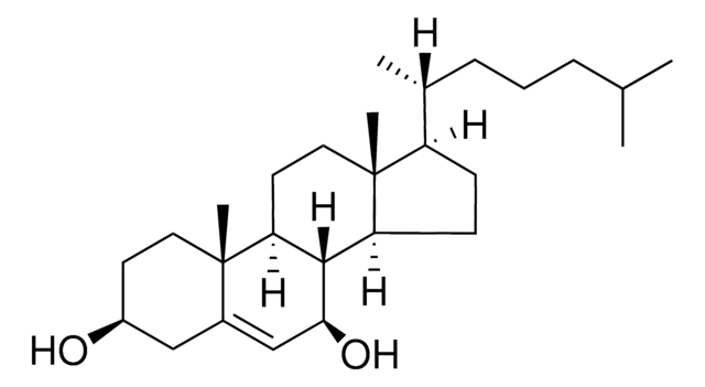 7β-hydroxycholesterol (7β-OHC) favors apoptosis via caspase 8 based mitochondrial pathway. It also hinders cancer cell survival by generating reactive oxygen species(ROS). The levels of 7β-OHC are elevated in the cerebrospinal fluid of multiple sclerosis and Alzheimer′s disease (AD) patients. 7β-OHC also promotes oxiapoptophagy and demyelination. It activates mitogen-activated protein kinases and modulates intracellular Ca2+ homeostasis and may contribute to the disorganization of Golgi and endoplasmic reticulum membranes.