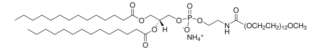14:0 PEG550 PE might be used as lipid additive to study its effect on the phase properties of hydrated monoolein. It is also suitable for use in the formation of liposomes encapsulating hemoglobin (LEHs).