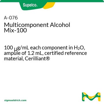 A multicomponent calibration kit containing acetone, ethanol, isopropanol, and methanol at a concentration of 100 μg/mL. This kit is suitable for calibration of blood alcohol testing methods using GC Headspace.
