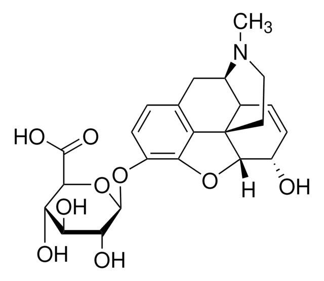 A certified solution standard of Morphine-3-ß-D-glucuronide at a concentration of 1.0 mg/mL for high volumes of sample testing. This certified solution standard is suitable for LCMS or GCMS applications including forensic analysis or urine drug testing.
