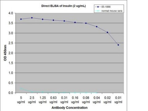 Insulin-coated plate was incubated with Anti-Insulin, clone E11D7 in 2-fold serial dilutions diluted in PBST from 5 μg/mL to 0.01 μg/mL.