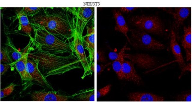 Immunocytochemistry Analysis: A 1:500 dilution from a previous lot detected Raptor in NIH/3T3 cells.