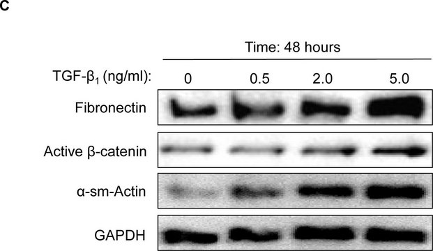 Western Blot Analysis: 0.2-2 µg/mL of this antibody detected β-catenin in RIPA lysates from A431 cells.