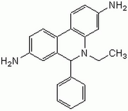 A cell-permeable, chemically reduced ethidium derivative that can be used as a fluorogenic probe for the detection of reactive oxygen species (ROS). It undergoes significant oxidation in resting leukocytes, possibly through the uncoupling of mitochondrial oxidative phosphorylation. Cytosolic dihydroethidium displays blue fluorescence, however, following oxidation to ethidium and subsequent intercalation to DNA, a bright red fluorescence is achieved. Often used to determine the level of superoxide anion in cells by flow cytometry.