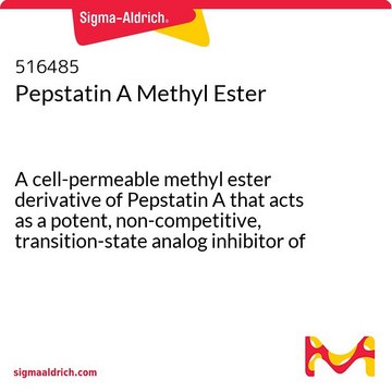 A cell-permeable methyl ester derivative of Pepstatin A (Cat. No. 516481) that acts as a potent, non-competitive, transition-state analog inhibitor of γ-secretase (Kis = 150 nM, Kii = 320 nM in solubilized human γ-secretase at 20°C; Kis is the inhibition constant for inhibitor binding to the free enzyme and Kii is the inhibition constant for inhibitor binding to the Enzyme-Substrate complex). Sta = (3S,4S)-4-Amino-3-hydroxy-6-methyl-heptanoic acid.