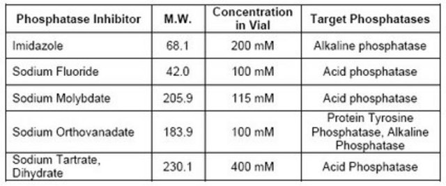 - Complete: contains five phosphatase inhibitors targeting acid and alkaline phosphatases and protein tyrosine phosphatases (PTPs).
