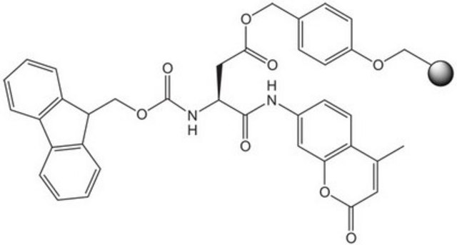 A novel resin for the preparation of peptide substrates based on 3-amino-7-methylcoumarin (AMC) by Fmoc SPPS. Following Fmoc removal with 20% piperidine, peptide assembly can be effected using standard coupling methods. Treatment with 95% TFA releases the peptide-AMC directly from the solid phase.
