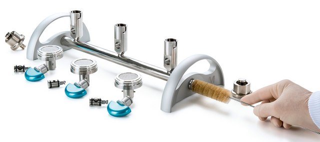 EZ-Fit® Manifold complete valve is integrated into the flexible tubing connection to avoid liquid back-flow from the vacuum system. The 2-ways valves are large and easy to operate. The design of the 2-way valve prevents the user accidentally touching the filtration head while opening or closing the valve. Filtration heads, valves, and tubing connections are all easily removable and can be easily cleaned.