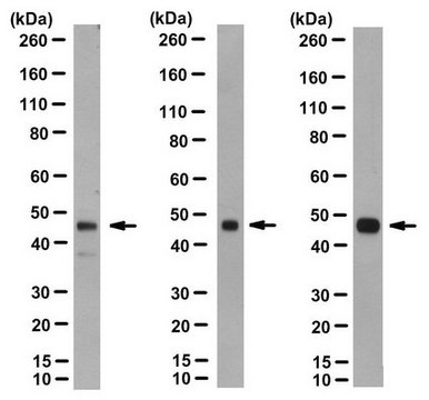 ~45 kDa observed. 46.74 kDa calculated. Uncharacterized bands may be observed in some lysate(s).