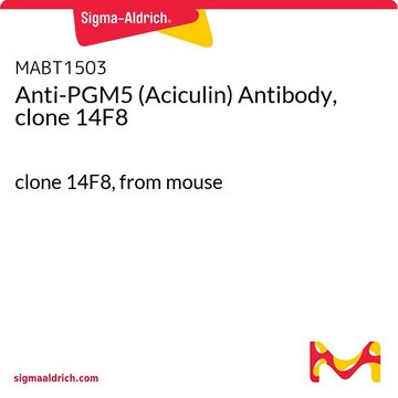 Anti-PGM5 (Aciculin), clone 14F8, Cat. No. MABT1503, is a mouse monoclonal antibody that detects Phosphoglucomutase-like protein 5 and has been tested for use in ELISA, Immunofluorescence, Immunohistochemistry, Immunoprecipitation, and Western Blotting.