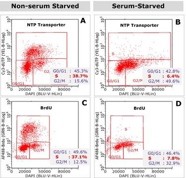 Quick and efficient transport of labeled NTPs into cells for live cell imaging of DNA replication, synthesis, etc. Labeling of DNA with fluorescent NTPs is one of the essential methods in cell cycle analysis.