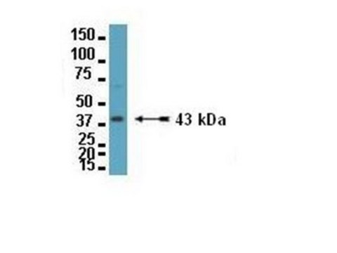 a predicted M.W. of ~43 kDa. It is prominently expressed in heart (see reviews: Kumar & Giula 1996; White et al. 1995; Evans 1994; Beyer et al. 1990).