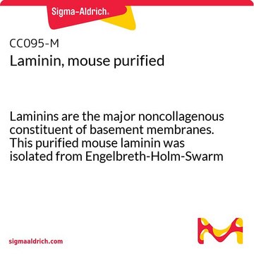 Laminin, mouse purified, Laminins are the major noncollagenous constituent of basement membranes. This purified mouse laminin was isolated from Engelbreth-Holm-Swarm (EHS) mouse sarcoma, a mouse tumor that produces large amounts of basement membranes.