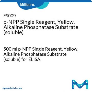 p-Nitrophenyl phosphate (p-NPP) is the customary product utilized for the assay of alkaline phosphatase. It is usually supplied in tablet or powder form and is dissolved in an appropriate buffer immediately prior to assay. Liquid p-NPP concentrates are also available, but must also be diluted in buffer. CHEMICON, Inc. now provides p-NPP stabilized in diethanolamine (DEA) buffer and available for instant use. The DEA buffer contains Mg++ and Zn++ ions providing optimum activation of alkaline phosphatase labeled probes.