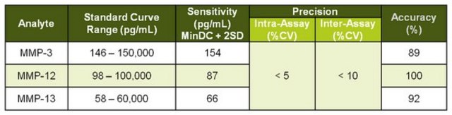 Analytes included: MMP-3, MMP-12, MMP-13