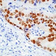 Exhibits nuclear staining in tumor cells. Antibody should be titrated for optimal results in individual systems.