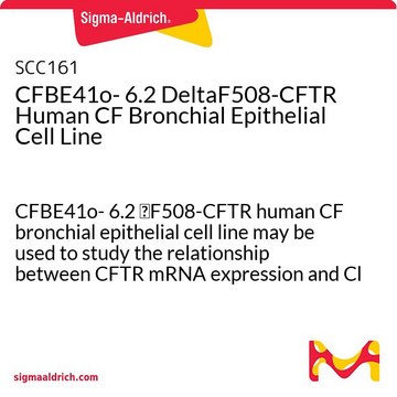 CFBE41o- 6.2 DeltaF508-CFTR Human CF Bronchial Epithelial Cell Line, CFBE41o- 6.2 ΔF508-CFTR human CF bronchial epithelial cell line may be used to study the relationship between CFTR mRNA expression and Cl transport function.