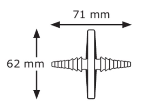 inlet stepped hose barb (with Female Luer slip interior), outlet stepped hose barb (with Female Luer slip interior)