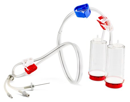 Nylon 66 adapter (for needle), PVC tubing (double lumen), PVDF membrane, plain filter, stainless steel (for needle), styrene-acrylonitrile (SAN) (for canister)