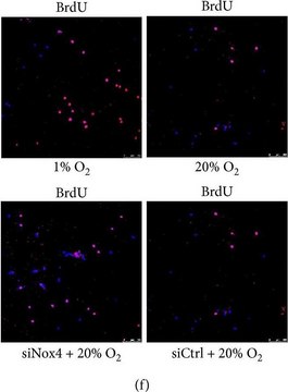 Anti-BrdU antibody, Mouse monoclonal (mouse IgG1) is derived from the BU-33 hybridoma produced by the fusion of murine myeloma cells and splenocytes from BALB/c mouse immunized with bromodeoxyuridine (BrdU) conjugated to KLH.5′-Bromo-2-deoxyuridine (BrdU) staining is predominantly used to observe the multiplication of tumor cells and other tissues in vivo.