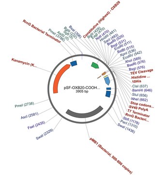 Promoter Expression Level: This plasmid contains a constitutive bacterial promoter that does not require induction. It is the strongest bacterial promoter we sell and this can cause solubility and expression problems with some proteins. We also offer a range of other bacterial promoters that are compatible with this plasmid and are available on request.