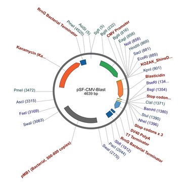 PSF-CMV-BLAST - CMV promoter blasticidin resistant plasmid is a blasticidin resistant plasmid where expression is controlled by the CMV promoter. It allows the production of mammalian cell lines carrying the plasmid.