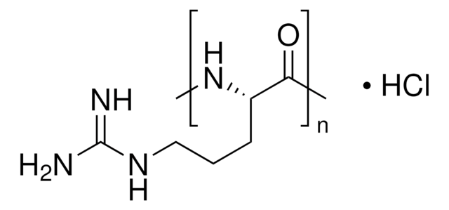 Poly-L-arginine hydrochloride (PLA) is a homopolyamino acid. PLA enhances membrane permeability compared to poly-L-lysine. It has applications as drug carrier, neuroprotective agent and in anticancer vaccines preparations. Peptide vaccines in conjugation with PLA promotes antigen-presenting cells (APCs) to generate T cell and elicit immunostimulant functionality.