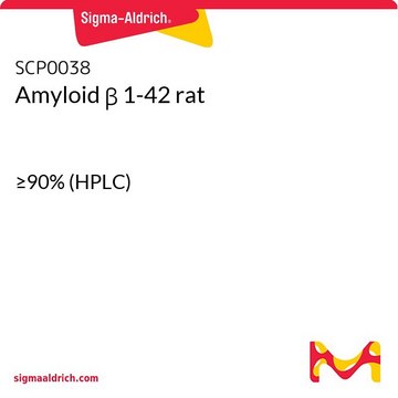 Amyloid β 1-42 forms amyloid fibrils more readily compared to Aβ(1–40), in vitro. Aβ1-42 injections are known to cause brain dysfunction indicating learning and memory deficits. Amyloid β (Aβ) refers to peptides derived from amyloid precursor protein that vary in length from 37–43 amino acids. Aβ(s) peptides, their peptide fragments, and mutated fragments are used to study a wide range of metabolic and regulatory functions including activation of kinases, regulation of cholesterol transport, function as a transcription factor, and regulators of inflammation. Aβ(s) peptides and their peptide fragments are also used to study oxidative stress, metal binding, and mechanisms of protein cross-linking in the context of diseases such as Alzheimer′s disease and neurodegeneration.