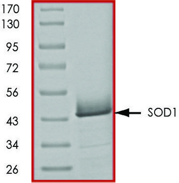 SOD1 (superoxide dismutase 1) is the major soluble cytoplasmic enzyme responsible for destroying harmful free superoxide radicals in the body thereby providing defence against oxygen free-radical toxicity. Soluble cytoplasmic SOD1 is a copper- and zinc-containing enzyme and the SOD1 gene maps to chromosome 21q22. Mutations in the SOD1 gene have been implicated to be the cause of familial amyotrophic lateral sclerosis, increased age-related muscle mass loss, early development of cataracts, macular degeneration, thymic involution, hepatocellular carcinoma, and shortned lifespan.