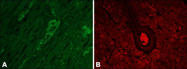 indirect immunofluorescence: 15-30 μg/mL using acetone-fixed frozen sections of rat or human heart, western blot: 2.5-5 μg/mL using whole extracts of cultured mouse NIH3T3 cells and human hepatoma HepG2 cells
