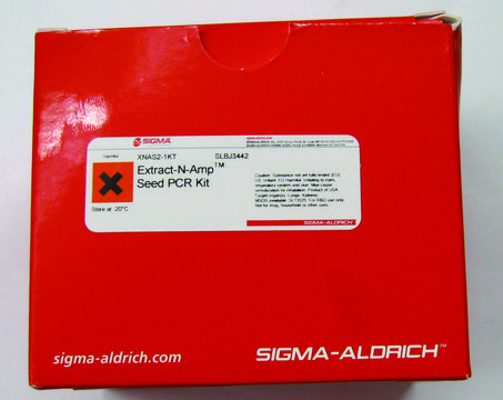 The kit comes with validated protocols to extract and amplify genomic DNA from corn, wheat, sunflower, cotton, soybean, sorghum, canola, and Arabidopsis seeds. Additional protocols are available. In a typical procedure, genomic DNA is extracted from a sample that has been ground and incubated in the Seed Preparation Solution and Extraction Solution for 10 minutes at room temperature. The sample is heated to 95 °C for 3 minutes and then mixed with a third solution to neutralize inhibitory substances prior to PCR. A portion of the DNA extract is then added to a PCR reaction containing primers and the Extract-N-Amp PCR ReadyMix, included in the kit.