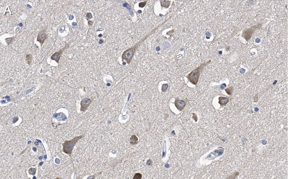 Immunohistochemistry (Paraffin) Analysis: A 1:1,000 dilution from a representative lot detected LC3A in human cerebral cortex tissue sections.