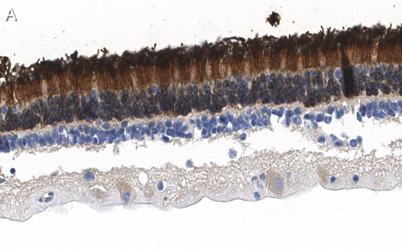 Immunohistochemistry (Paraffin) Analysis: A 1:100 dilution from a representative lot detected Rhodopsin in human retina tissue sections.