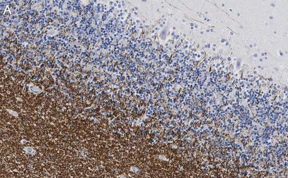 Immunohistochemistry (Paraffin) Analysis: A 1:100 dilution from a representative lot detected Myelin-associated glycoprotein (MAG) in human cerebellum tissue sections.