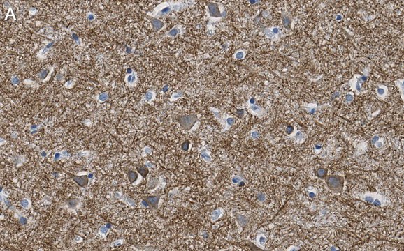 Immunofluorescence Analysis: A 1:100 dilution from a representative lot detected K+/Cl- Cotransporter-2 (KCC2) in human cerebral cortex tissue sections.