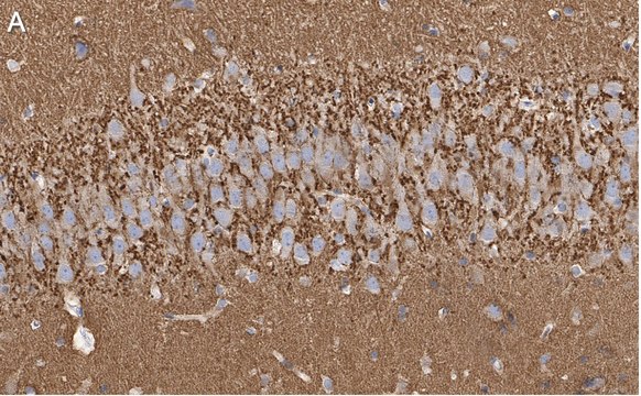 Immunohistochemistry (Paraffin) Analysis: A 1:100 dilution from a representative lot detected Synaptophysin in rat brain tissue sections.