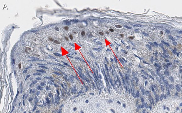 Immunohistochemistry (Paraffin) Analysis: A 1:100 dilution from a representative lot detected GRHL2 in human skin tissue sections.