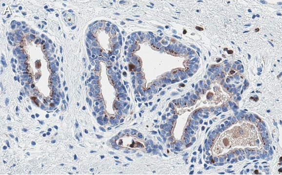 Immunohistochemistry (Paraffin) Analysis: A 1:1,000 dilution from a representative lot PTEN in human prostate cancer tissue sections.